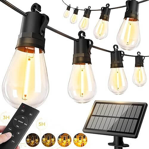 Enjoy customizable outdoor lighting with these remote-controlled Solar Patio String Lights. Featuring shatterproof bulbs, dimmable settings, and 54ft coverage, you can effortlessly set the mood for any occasion. Solar-powered convenience meets style. Transform your backyard today!